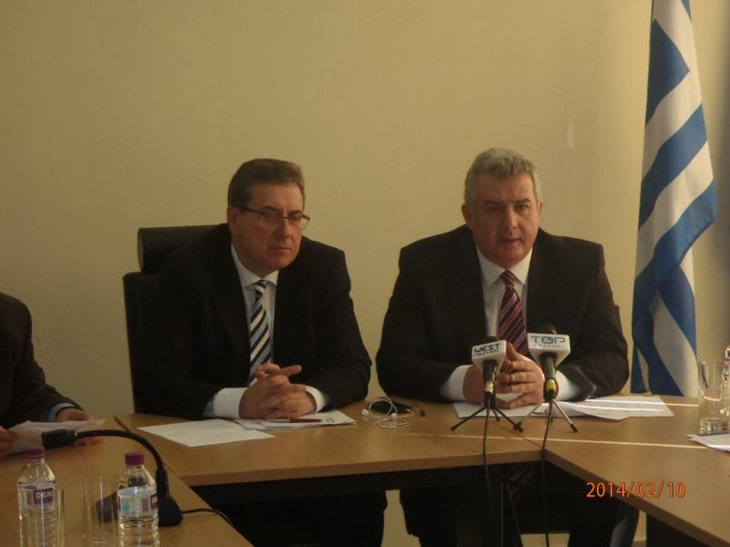 Πραγματοποιήθηκε τη Δευτέρα 10/2/2014 στη 1.00 το μεσημέρι, στην Αίθουσα «Μέγας Αλέξανδρος» του 2ου ορόφου της Περιφέρειας στη ΖΕΠ, κοινή συνέντευξη τύπου του Περιφερειάρχη Δυτικής Μακεδονίας κ. Γιώργου Δακή και των στελεχών της Περιφέρειας κ. Γεώργιου Σβώλη, Αντιπεριφερειάρχη Επιχειρηματικότητας, Εμπορίου και Απασχόλησης, και κ. Ζήση Πιτσέλη, Διευθυντή Αναπτυξιακού Προγραμματισμού, με το Γενικό Διευθυντή της ΚΕΠΑ – ΑΝΕΜ κ. Σπύρο Σκοτίδα και την Υπεύθυνη του τομέα επιχειρηματικότητας της ΑΝΚΟ κας Λιάνας Παπατέρπου, στο πλαίσιο των ενημερωτικών εκδηλώσεων που θα πραγματοποιηθούν για τους Δικαιούχους του προγράμματος "Ενίσχυση Μικρομεσαίων Επιχειρήσεων στους τομείς Μεταποίησης – Τουρισμού – Εμπορίου – Υπηρεσιών στο πλαίσιο του ΕΣΠΑ 2007-2013'' στην Περιφέρεια Δυτικής Μακεδονίας.