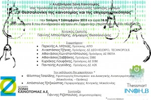 Η Αλεξάνδρεια Ζώνη Καινοτομίας διοργανώνει την Τετάρτη 9 Σεπτεμβρίου 2015 και ώρα 18.00 (6.00μ.μ.) στο συνεδριακό κέντρο ''Νικόλαος Γερμανός''(Αίθουσα Β) της ΔΕΘ συζτήση στρογγυλής τράπεζας με θέμα ''Η Θεσσαλονίκη της καινοτομίας και της επιχειρηματικότητας''.