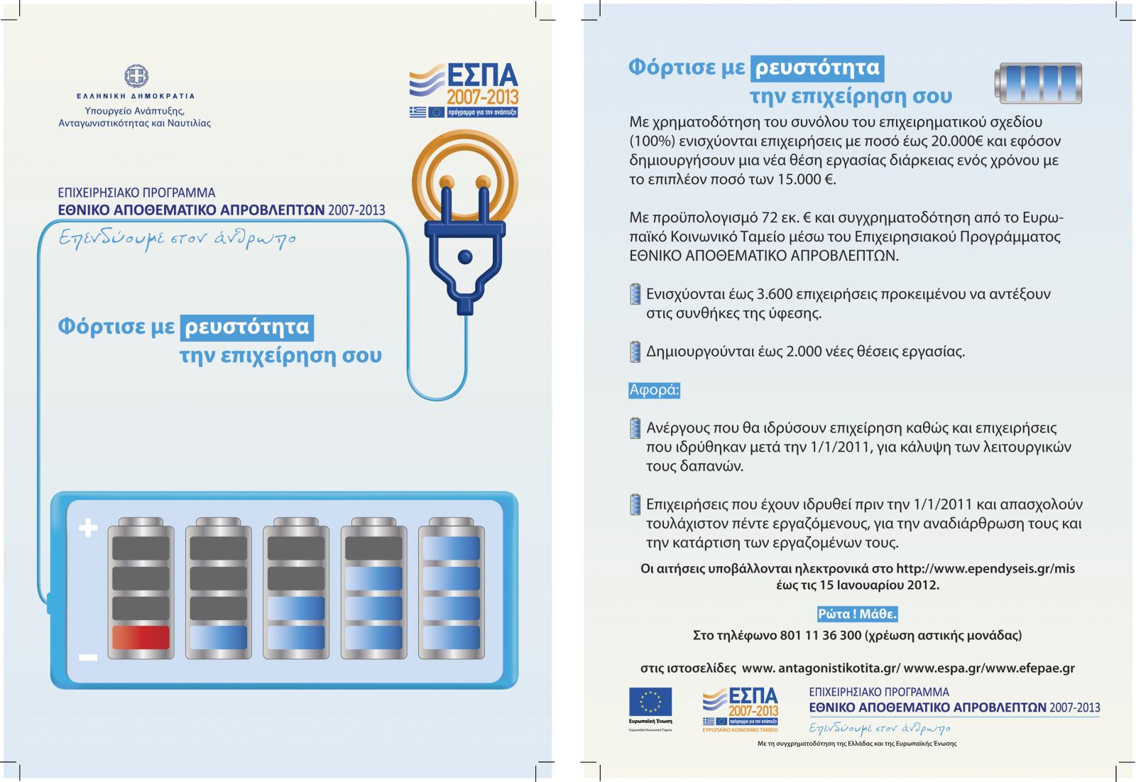 A A Εκδοση ενημερωτικών εντύπων απο την ΕΥΔ-ΕΠΑΕ για το πρόγραμμα ''Εναλλακτικός Τουρισμός'' του ΕΠΑΝ ΙΙ και τις Δράσεις του Ε.Π. ''Εθνικό Αποθεματικό Απροβλέπτων'' που διαχειρίζονται η ΕΥΔ-ΕΠΑΕ και ο ΕΦΕΠΑΕ 23/11/2011 Ενημερωτικό έντυπο για το πρόγραμμα ''Εναλλακτικός Τουρισμός'' του ΕΠΑΝ ΙΙ Ενημερωτικό έντυπο για τις Δράσεις του Ε.Π. "Εθνικό Αποθεματικό Απροβλέπτων''