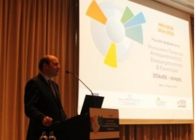 O Υπουργός Ανάπτυξης και Ανταγωνιστικότητας κ. Κωστής Χατζηδάκης μίλησε σήμερα Πέμπτη 3/4/2014 στην ημερίδα διαβούλευσης για το Επιχειρησιακό Πρόγραμμα Ανταγωνιστικότητα, Επιχειρηματικότητα και Καινοτομία («ΕΠΑνΕΚ-κίνηση») του νέου ΕΣΠΑ 2014-202 που πραγματοποιήθηκε στην Αθήνα.