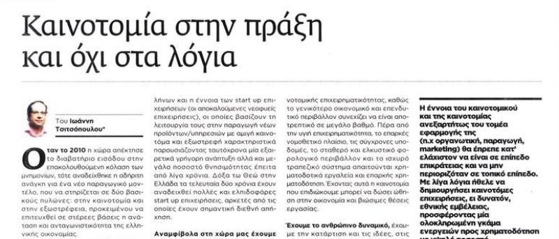 Άρθο- Άποψη του Υπεύθυνου Δημοσιότητας & Πληροφόρησης της ΚΕΠΑ-ΑΝΕΜ κ. Ι. Τσιτσόπουλου στην εφημερίδα Μακεδονία της Κυριακής (Ένθετο Οικονομία)